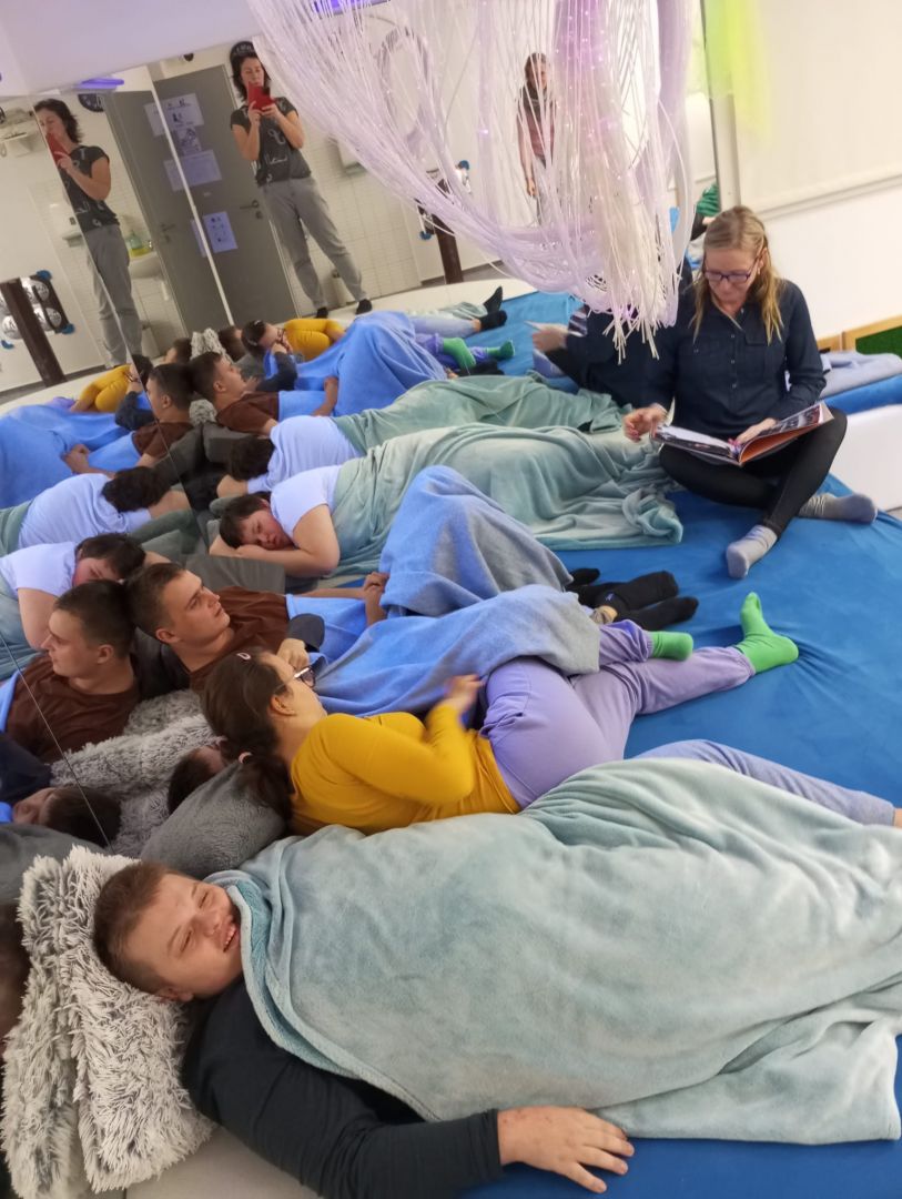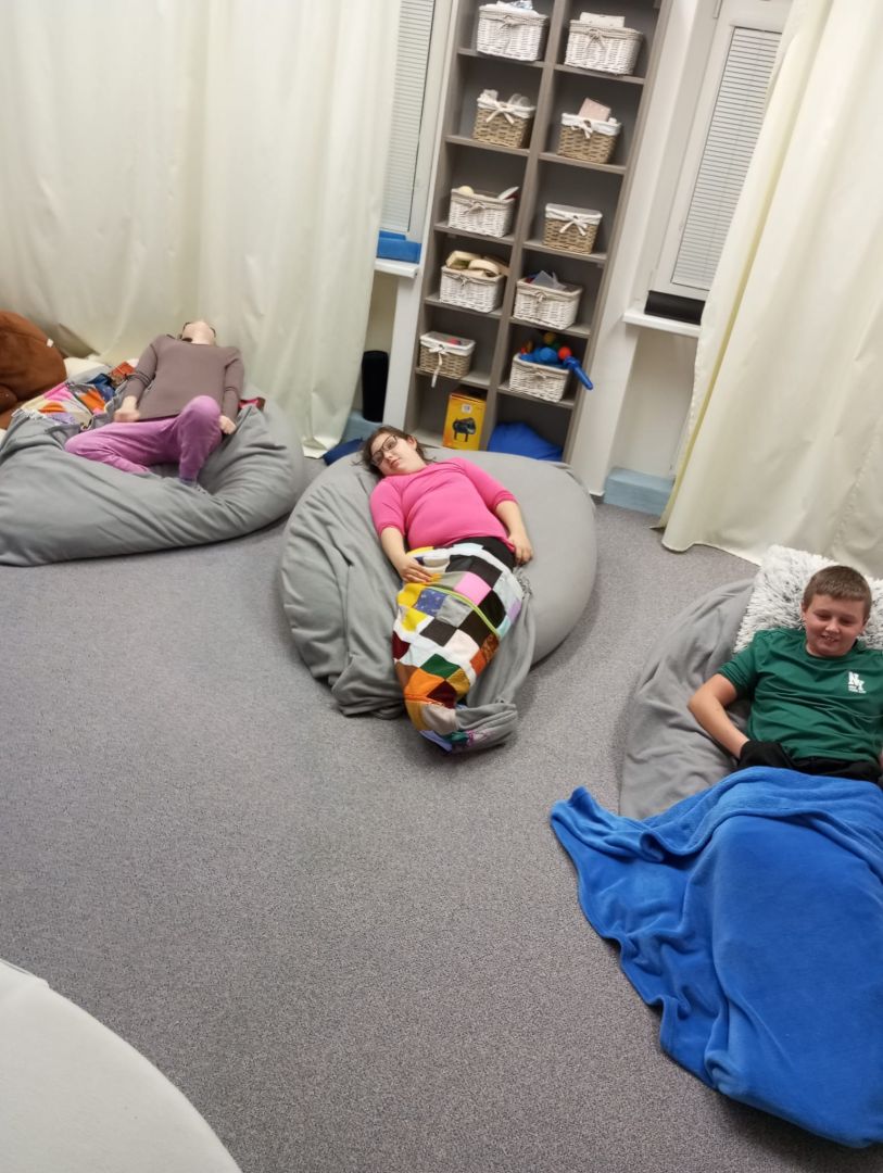 Po pečení děti odpočívaly v místnosti Snoezelen, kde si dopřály zasloužený relax při tlumeném světle, příjemných vůních a klidné hudbě.