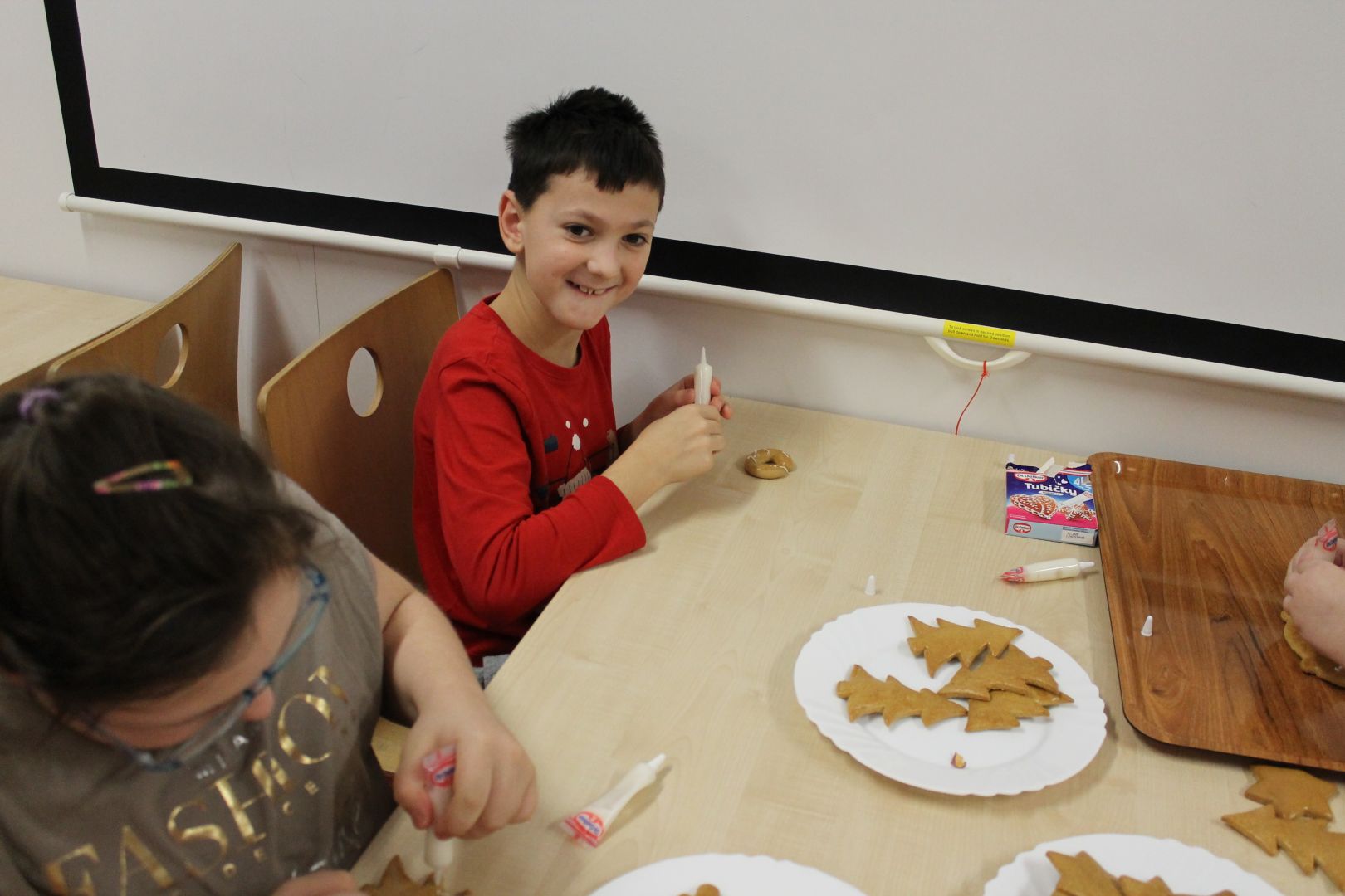 V naší škole jsme si užili příjemné předvánoční odpoledne se společným zdobením perníčků, kterého se zúčastnili i rodiče dětí z internátu. Kromě tvoření jsme si vyzkoušeli také dva tradiční vánoční zvyky – krájení jablíčka pro štěstí a pouštění lodiček z ořechových skořápek. Celou akci doplnila voňavá ochutnávka cukroví, která navodila krásnou sváteční atmosféru.