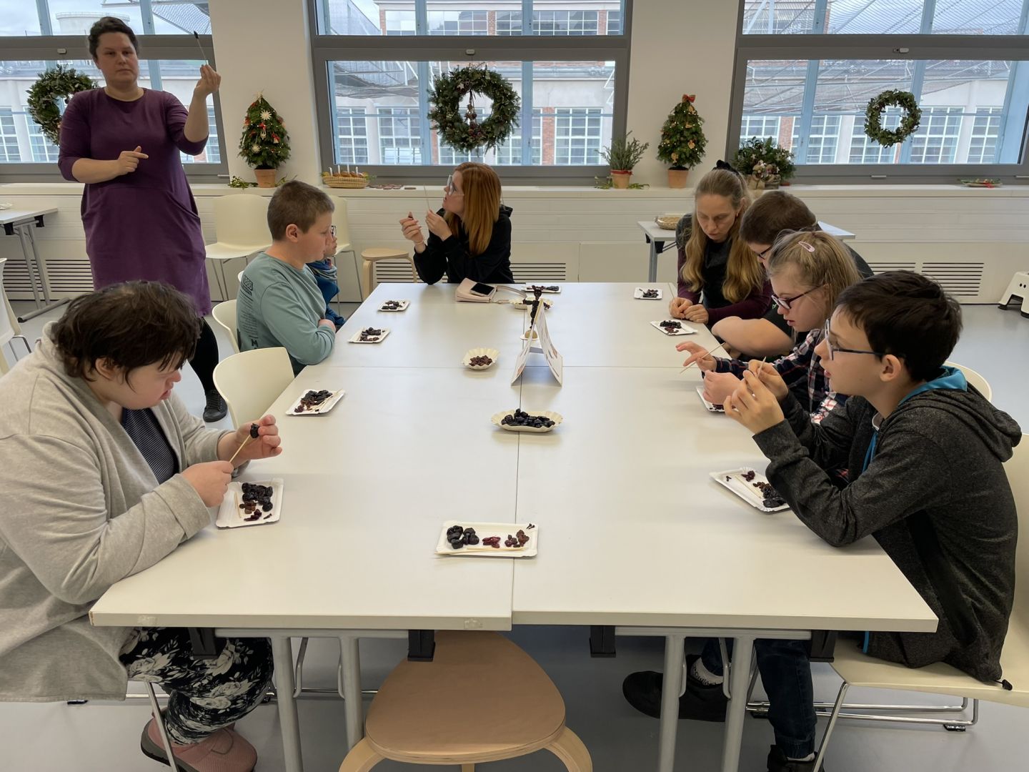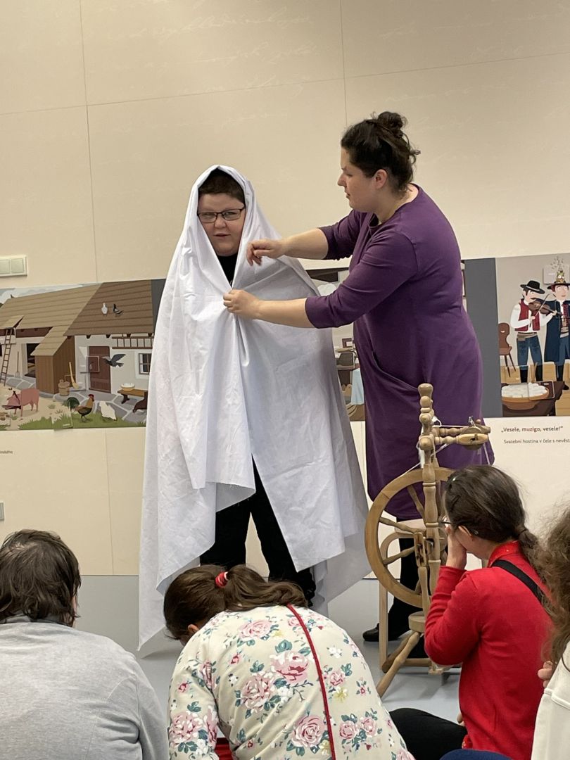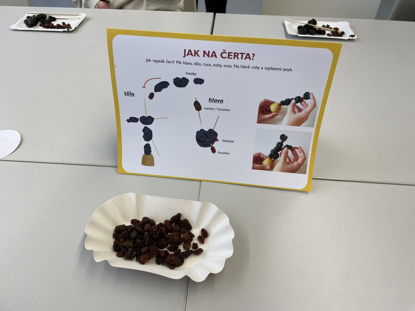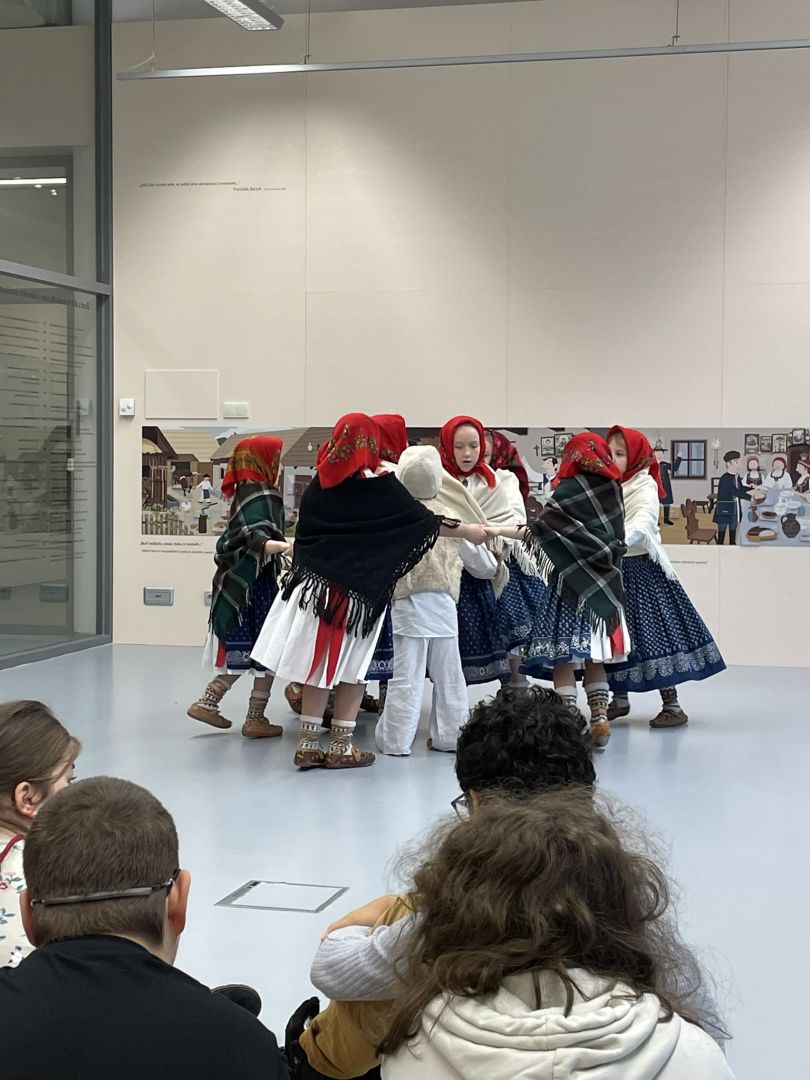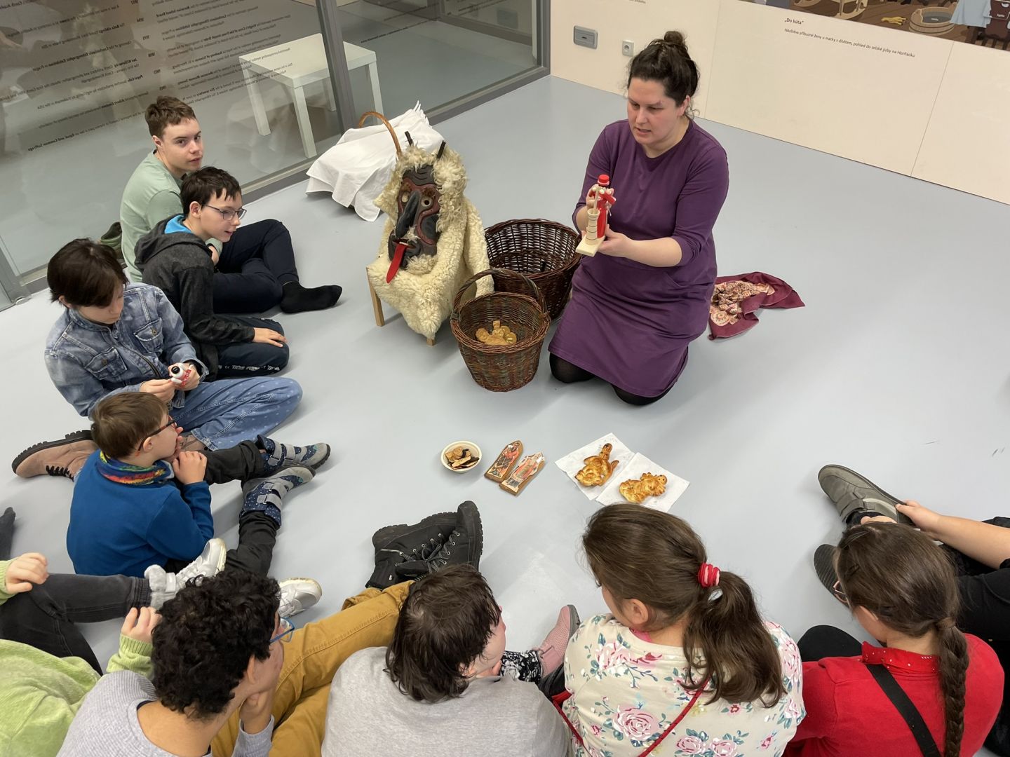 Dnes jsme v muzeu zažili Vánoce našich předků, představili jsme si tradice, které lidé dříve dodržovali a vyzkoušeli si, jak vypadaly bytosti, které se lidem v adventním období zjevovaly.  Vyzkoušeli jsme si oblečení, které děti nosily na koledu. Prohlédli jsme si výstavu betlémů. V průběhu programu jsme zhlédli vystoupení Bartošova dětského souboru. Odcházeli jsme vánočně naladěni i s čertem, který jsme si vyrobili ze sušeného ovoce