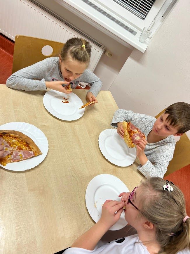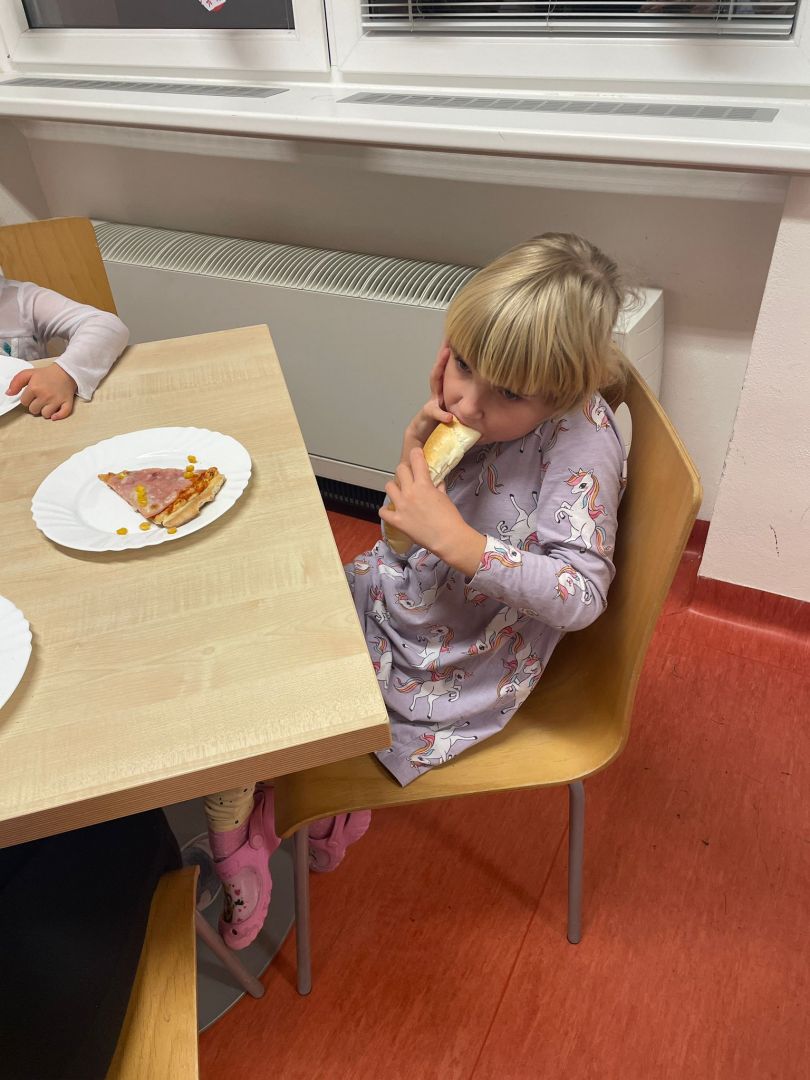 Nejdříve jsme si vymalovali každý své strašidlo. Poté už nás čekala strašidelné stezka, kterou děti zvládly na výbornou. Na konci stezky čekaly děti odměny a pořádná strašidelná diskotéka. Diskotéku si děti nejvíce užily. Poté už nám pan kurýr dovezl výborné pizzy, které zmizely během pár minut.