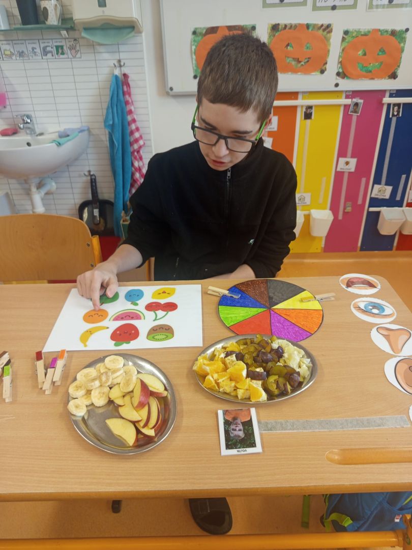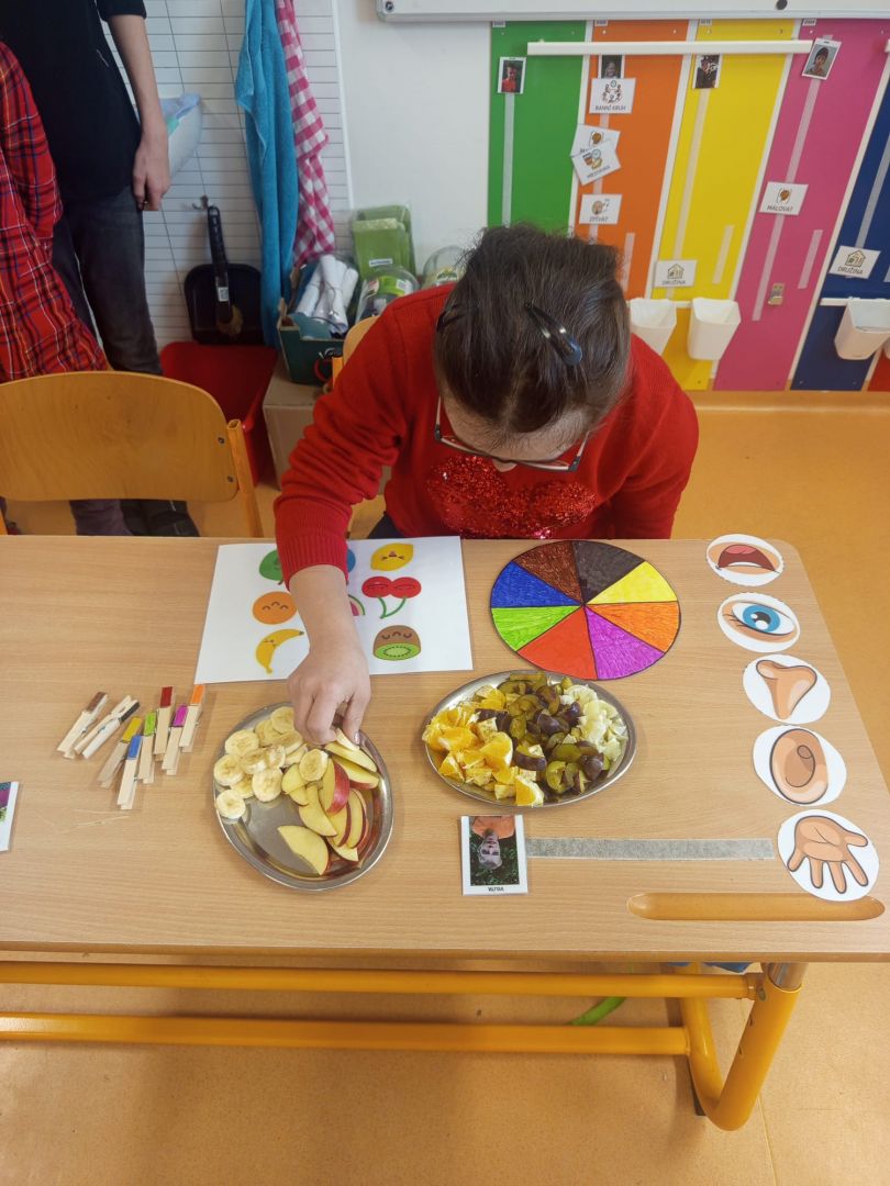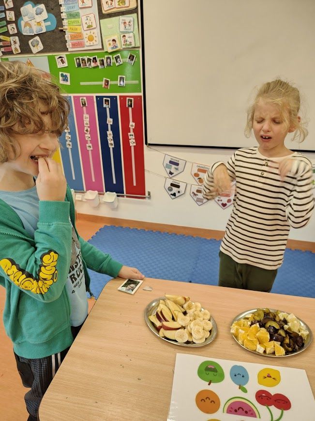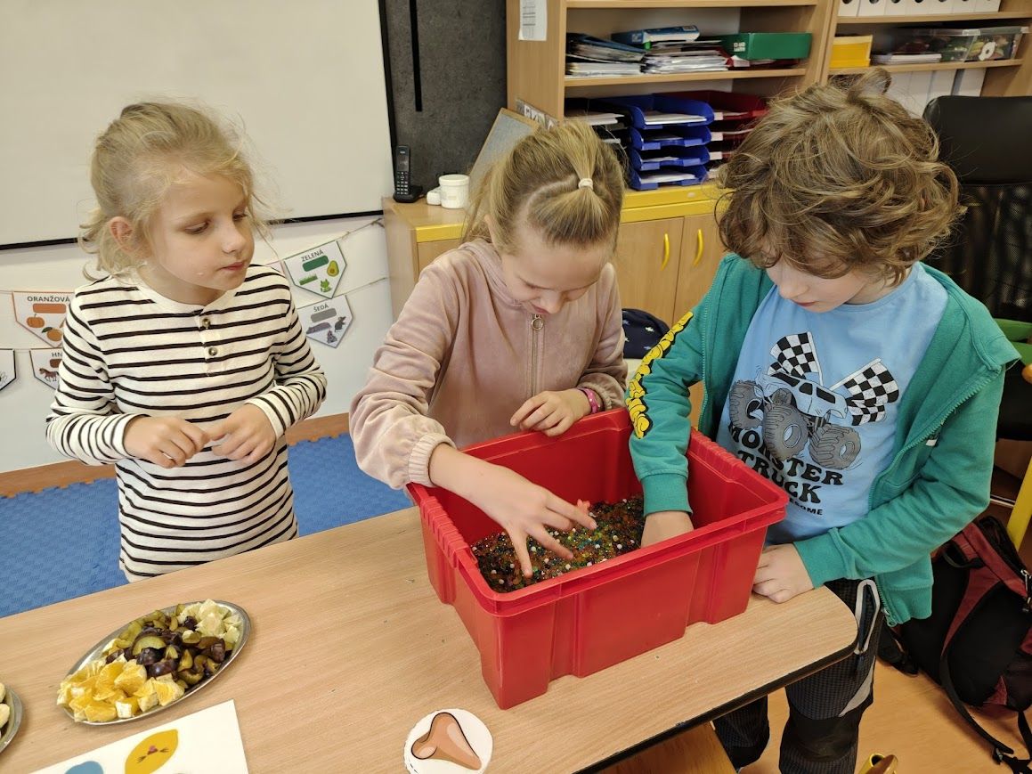 Tento měsíc jsme se s dětmi zaměřili na naše smysly. Zkoumali jsme chuť, hmat, čich, sluch i zrak. Nejvíce legrace jsme si užili při ochutnávání citrónu-po prvním soustu už citrón nikdo nechtěl. V kuličkách jsme trénovali hmat. Děti hledaly malá domácí zvířátka, která jsme si pak pojmenovali a zkusili napodobit jejich zvuky.