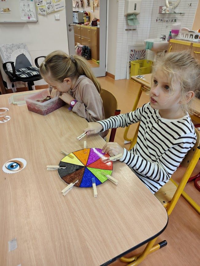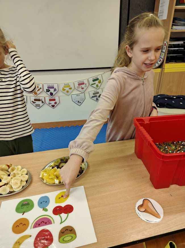Také jsem potrénovali barvičky a jemnou motoriku při připínání kolíčků, což děti velmi bavilo.