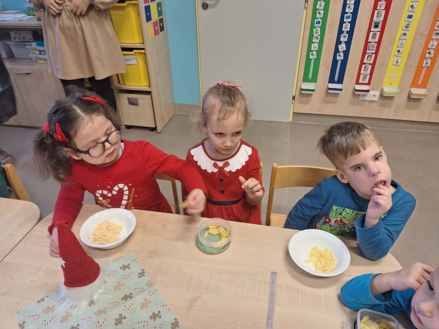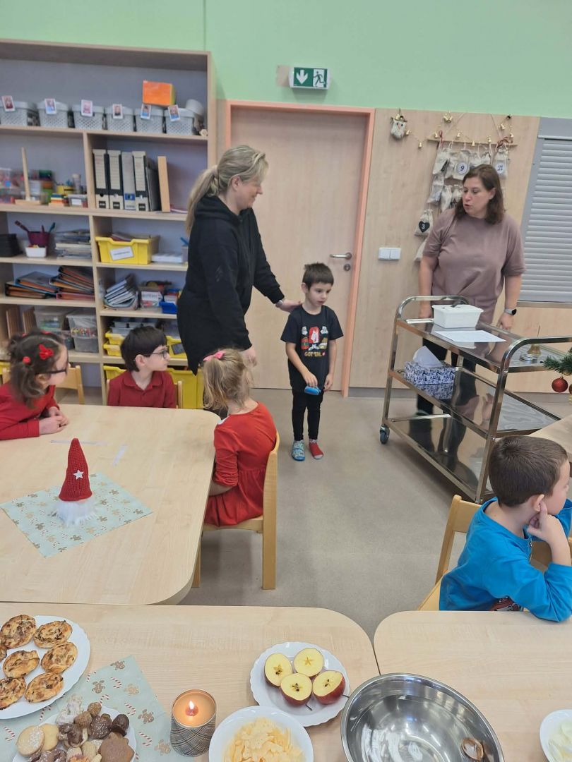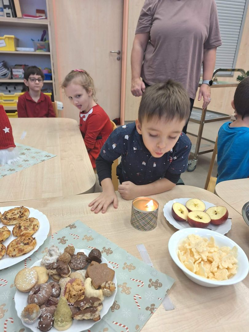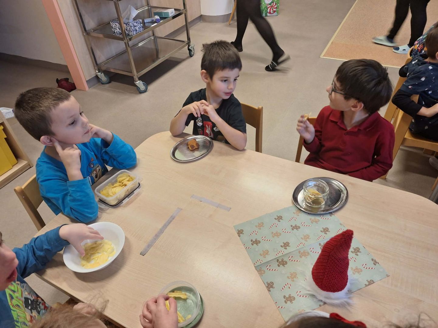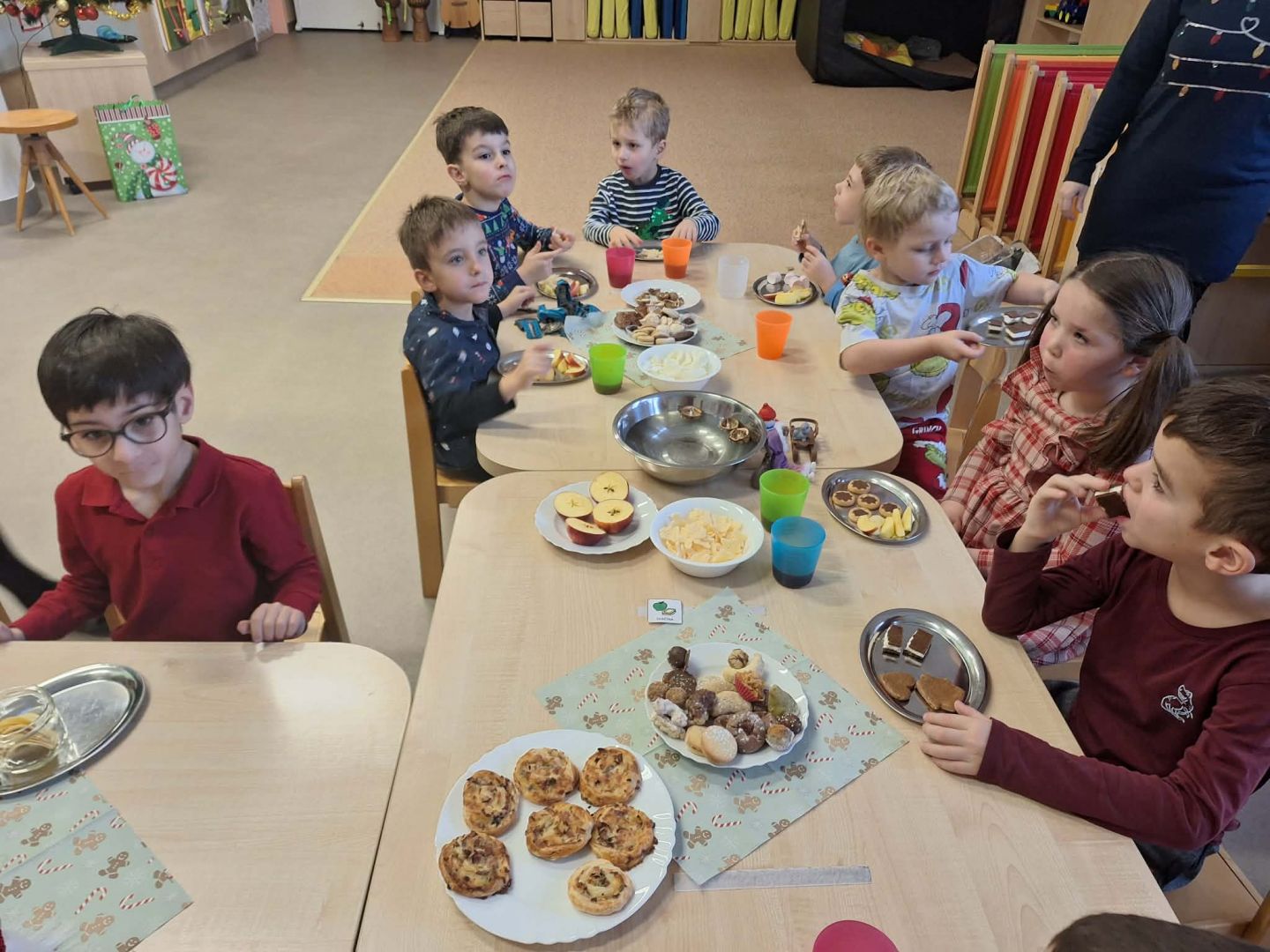 Dnes jsme si v MŠ uspořádali slavnostní dopoledne "Posezení u vánočního stromečku" - zážitkovou pedagogiku. Společně jsme si zavzpomínali, jak Vánoce slavili naši dědečkové a babičky. Děti si vyzkoušely některé tradice, zpívali jsme koledy, ochutnávali vánoční cukroví a nakonec nám Ježíšek nadělil dárečky :)