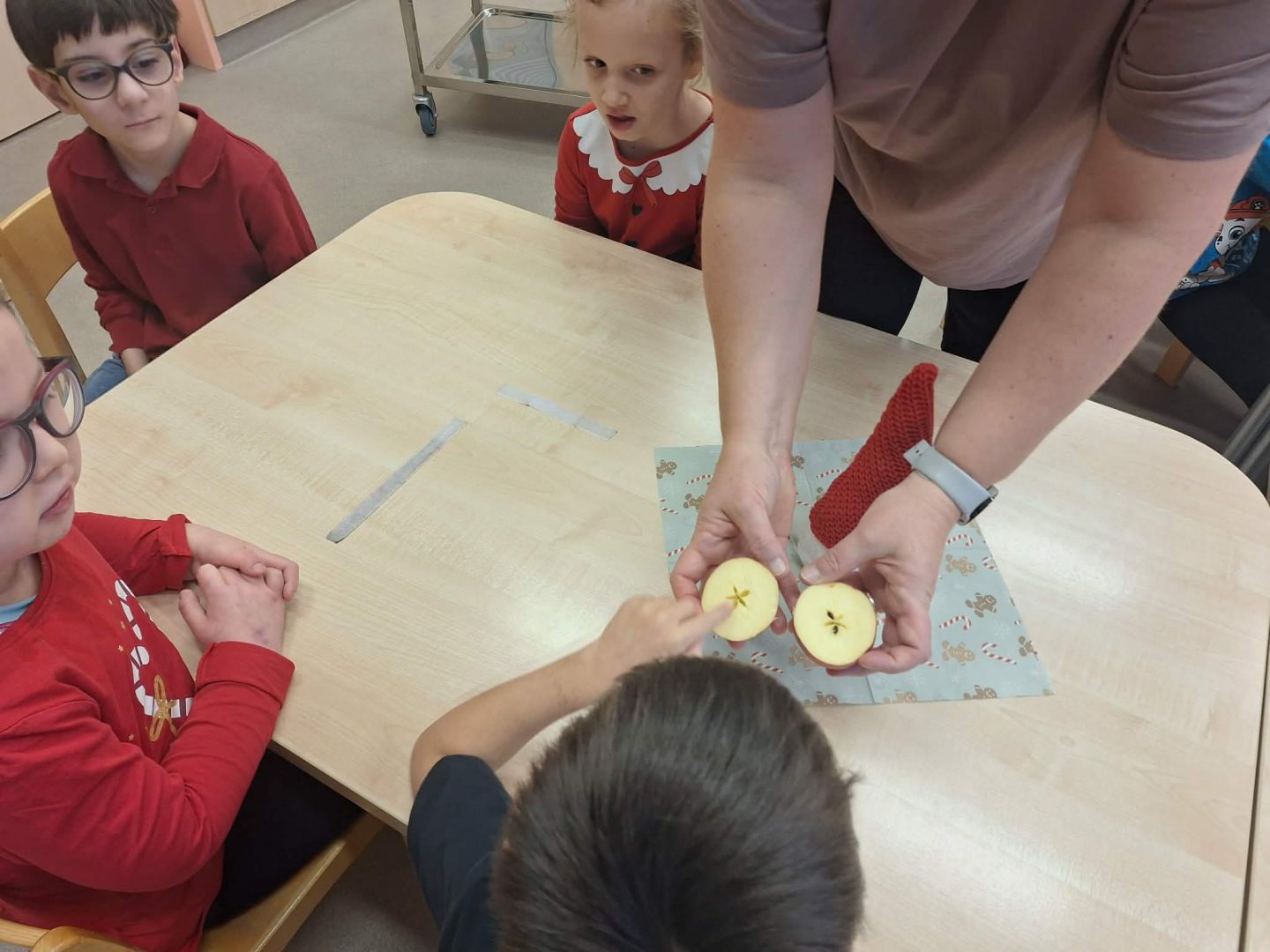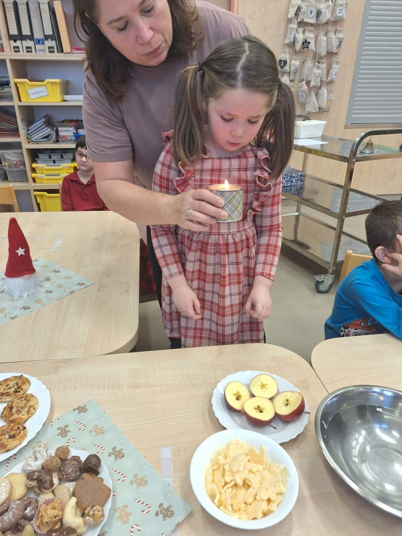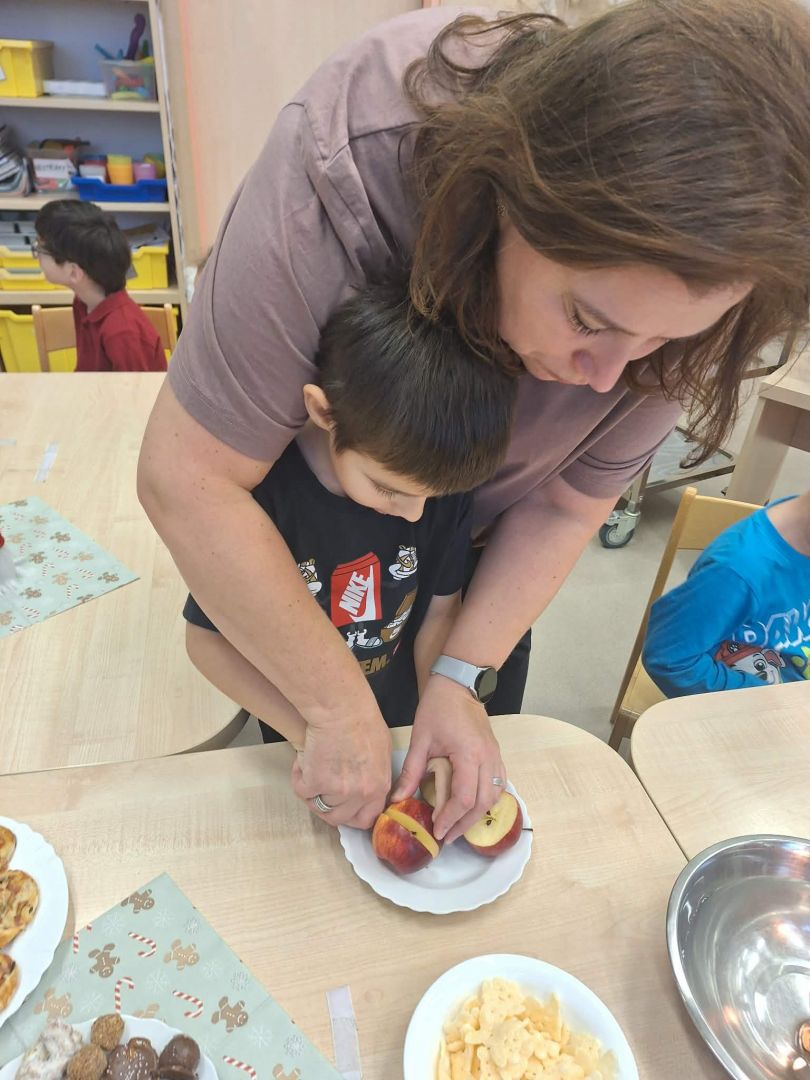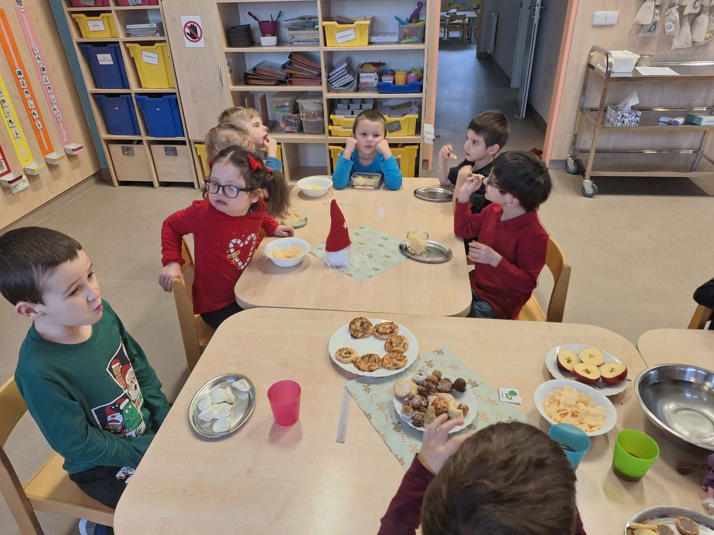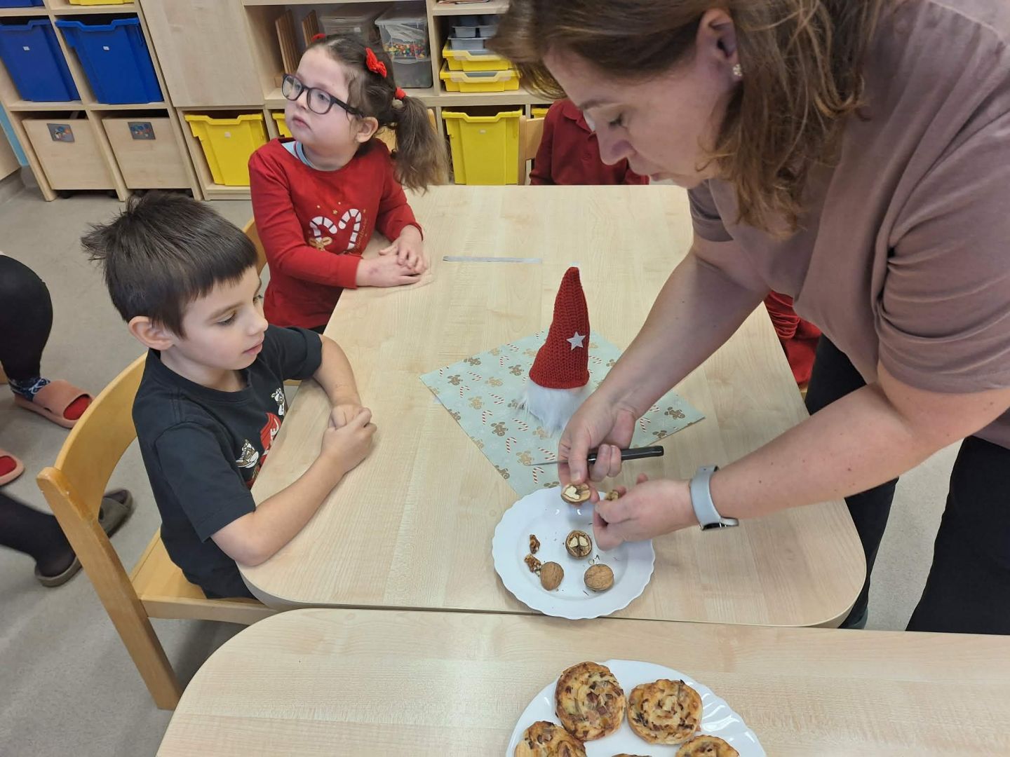 Dnes jsme si v MŠ uspořádali slavnostní dopoledne "Posezení u vánočního stromečku" - zážitkovou pedagogiku. Společně jsme si zavzpomínali, jak Vánoce slavili naši dědečkové a babičky. Děti si vyzkoušely některé tradice, zpívali jsme koledy, ochutnávali vánoční cukroví a nakonec nám Ježíšek nadělil dárečky :)