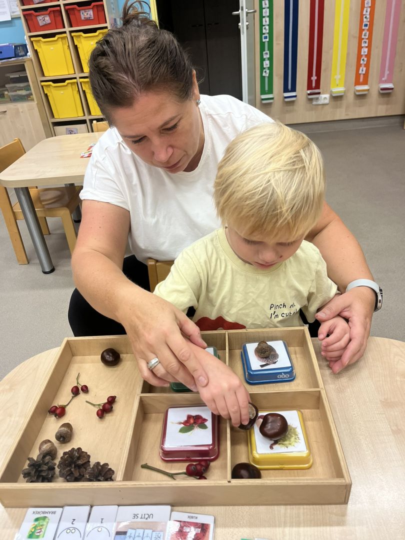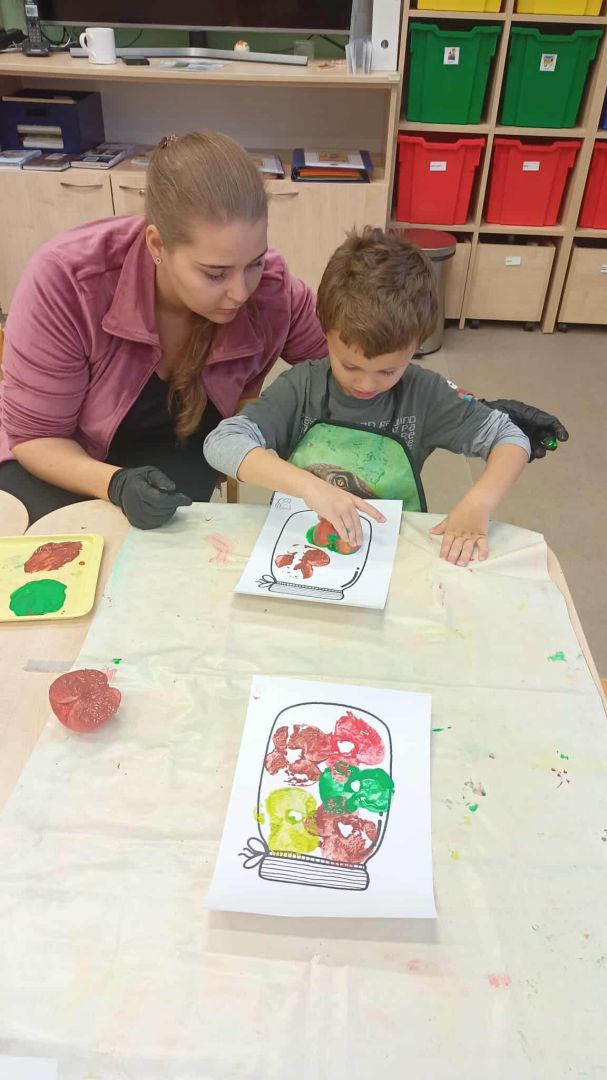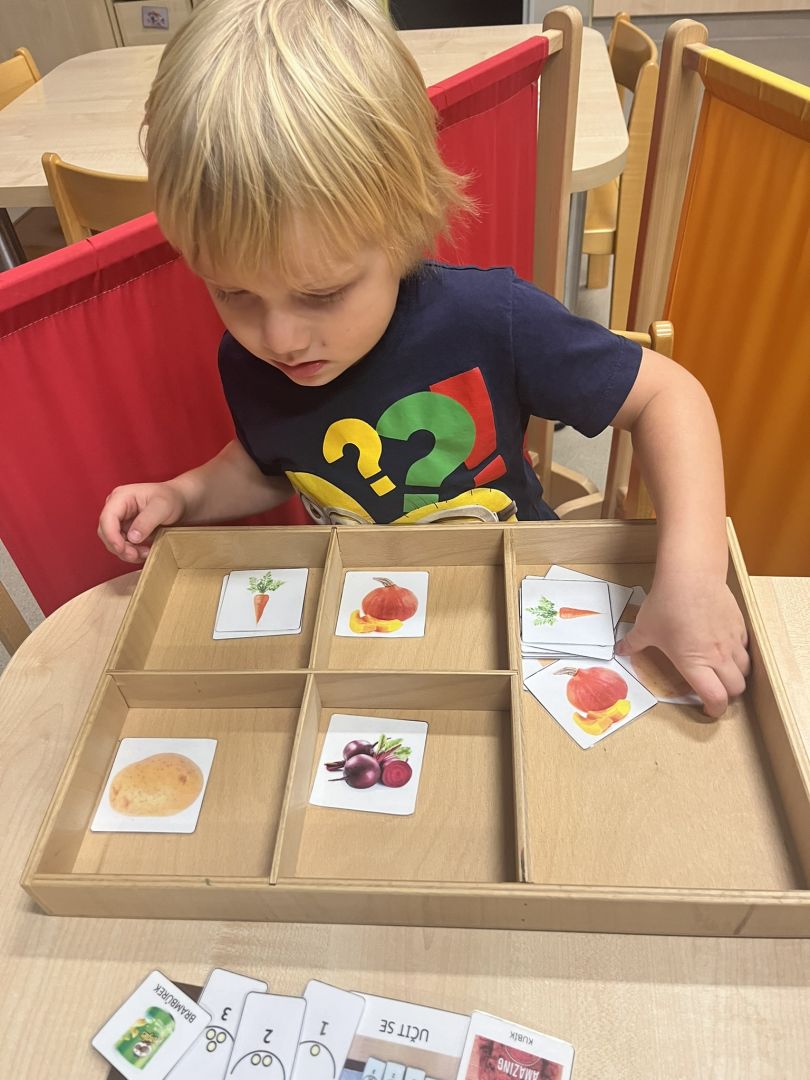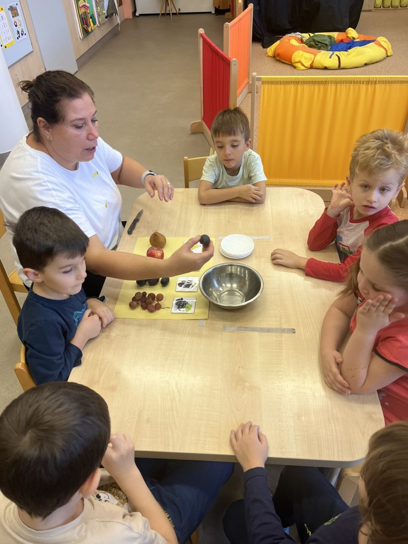 V měsíci říjnu se v naší mateřské škole děti seznámily s kouzlem podzimu, který přináší spoustu barev, vůní a zajímavých témat. Podzim klepe na dvěře - V tématu "Podzim klepe na dveře" se děti seznámily s tím, jak podzim postupně mění přírodu kolem nás. Součástí aktivit je také podpora rozpoznávání změn počasí a přizpůsobení se podzimním podmínkám, což dětem pomáhá zlepšit jejich každodenní dovednosti a samostatnost. Podzimní košík ovoce - V rámci tématu podzimního ovoce jsme se s dětmi zaměřili na to, jak ovoce vnímáme všemi smysly. Děti poznávaly jablka, hrušky, švestky a hrozny nejen pohledem, ale i dotykem, vůní a chutí. Podzimní košík zelenina - V tématu podzimní zeleniny jsme s dětmi objevovali různé druhy zeleniny, jako jsou dýně, mrkev, brambory a zelí. Kromě toho jsme s dětmi chodili do přírody, sbírat podzimní plody a pozorovat, jak se podzim mění kolem nás. V tomto měsíci jsme také začali s canisterapií a muzikoterapií.
