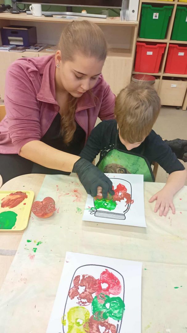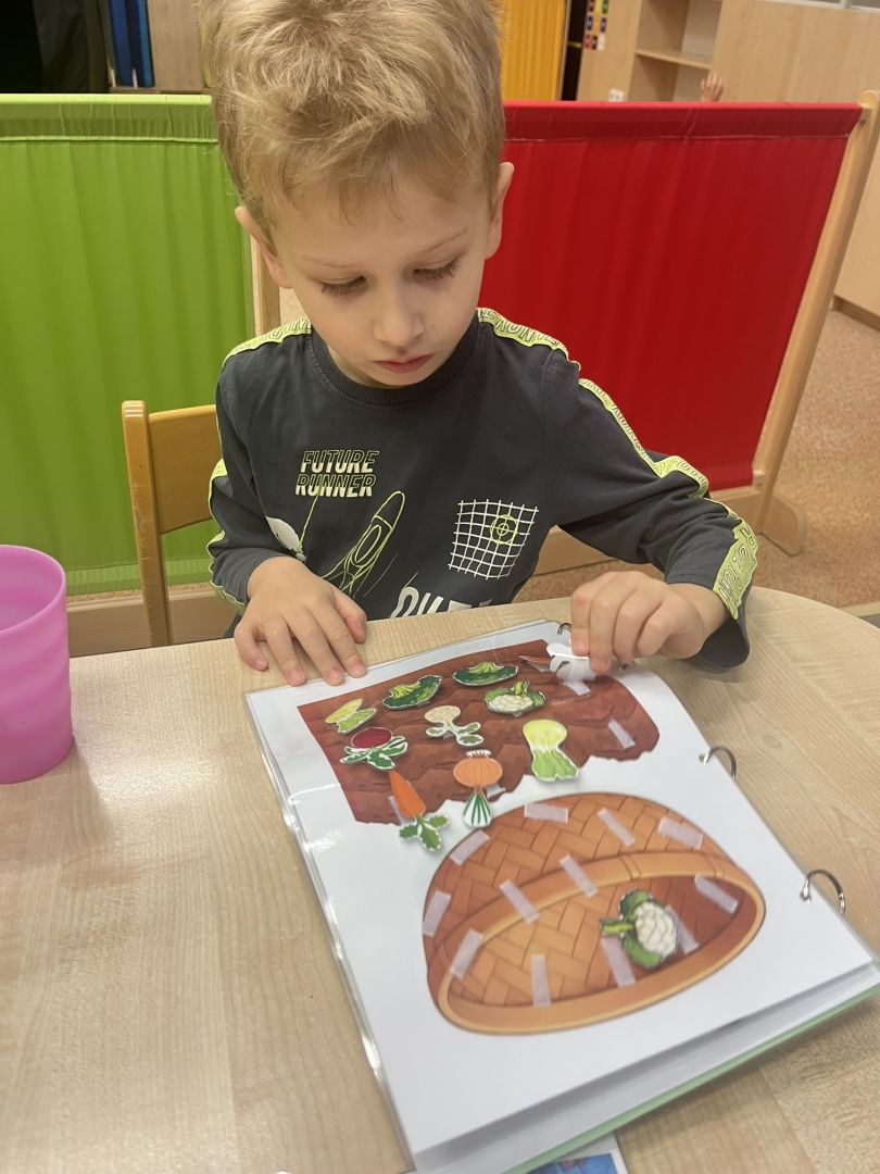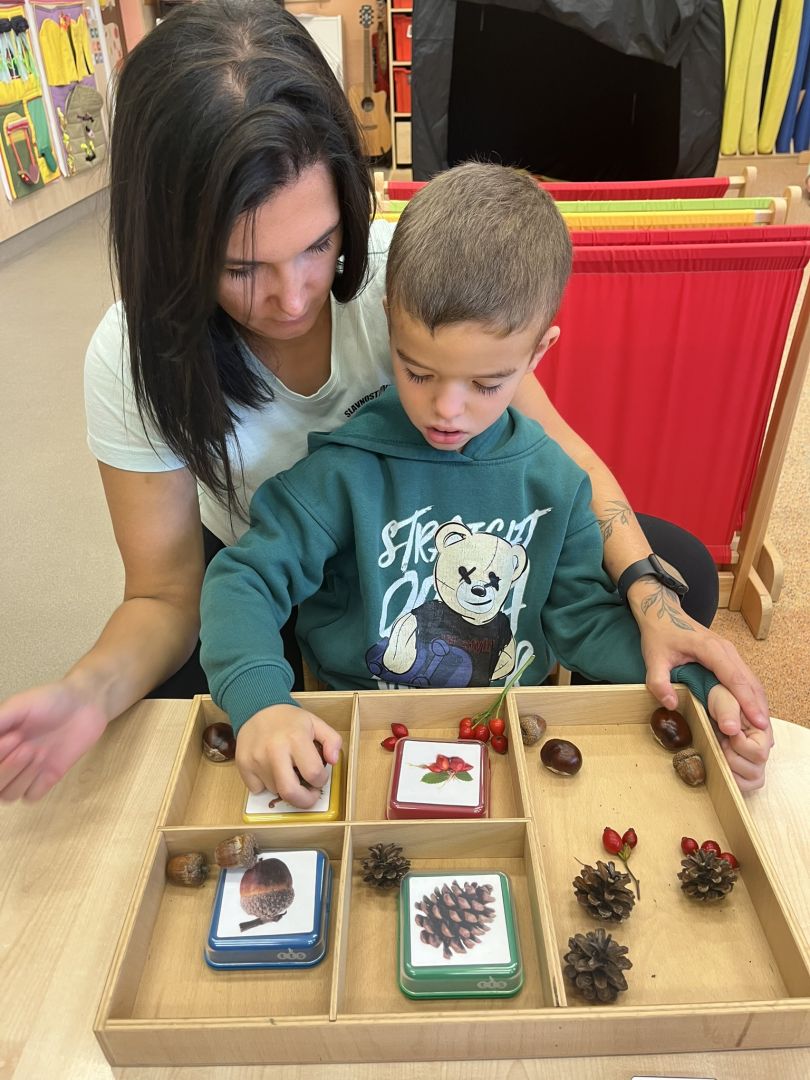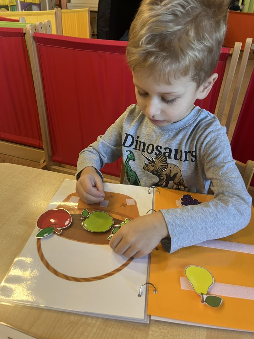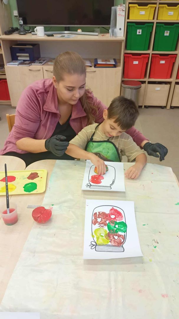 V měsíci říjnu se v naší mateřské škole děti seznámily s kouzlem podzimu, který přináší spoustu barev, vůní a zajímavých témat. Podzim klepe na dvěře - V tématu "Podzim klepe na dveře" se děti seznámily s tím, jak podzim postupně mění přírodu kolem nás. Součástí aktivit je také podpora rozpoznávání změn počasí a přizpůsobení se podzimním podmínkám, což dětem pomáhá zlepšit jejich každodenní dovednosti a samostatnost. Podzimní košík ovoce - V rámci tématu podzimního ovoce jsme se s dětmi zaměřili na to, jak ovoce vnímáme všemi smysly. Děti poznávaly jablka, hrušky, švestky a hrozny nejen pohledem, ale i dotykem, vůní a chutí. Podzimní košík zelenina - V tématu podzimní zeleniny jsme s dětmi objevovali různé druhy zeleniny, jako jsou dýně, mrkev, brambory a zelí. Kromě toho jsme s dětmi chodili do přírody, sbírat podzimní plody a pozorovat, jak se podzim mění kolem nás. V tomto měsíci jsme také začali s canisterapií a muzikoterapií.